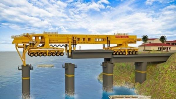 2、黄色架桥机(用于桥梁架设)、桥梁墩柱、海洋及岸边建筑,涉及“移动模架逐孔现浇法”等桥梁施工知识,玩法或为操控架桥机完成桥梁架设任务。
