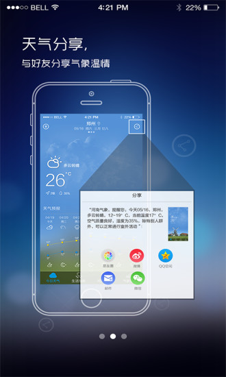 1.可以随时把最新天气情况分享给远在天边的亲朋好友,给他们送去满满的心意。