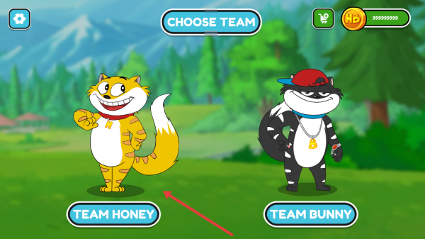 1、选“TEAM HONEY”(黄猫),进入城市赛道,用99999999金币,开始竞速。