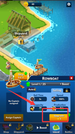 1、 开始游戏后优先建设资源采集点,如木材场和矿场,确保有充足物资用于扩建岛屿和打造舰队。