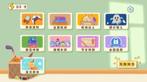 1、主题闯关模式,按照房间整理、减压玩具、生活场景等分类推进关卡,解锁新主题可获得特殊道具奖励。
