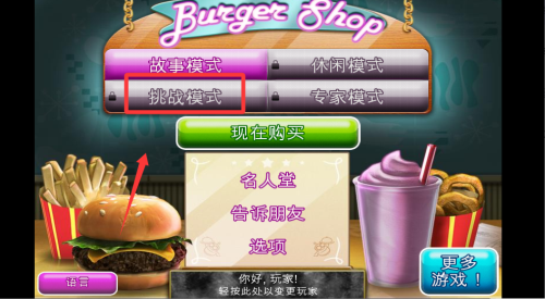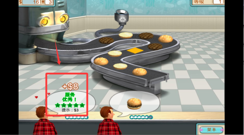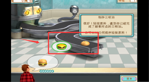 1、先从基础模式开始熟悉操作,了解如何制作汉堡和奶昔,按照顾客需求快速出餐。