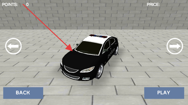 2、在车辆选择界面,选定黑色警车(可通过左右箭头切换车辆),点击右下角【PLAY】按钮,准备驾驶警车。