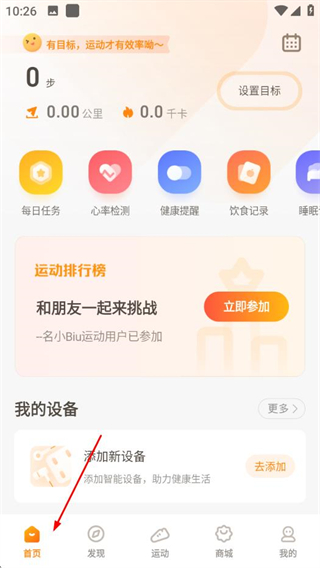 小biu运动app面向运动爱好者提供了贴心的跑步计数服务,首页可直接调用心率检测、饮食记录等工具,其中卡路里查询支持拍照识别菜品热量;睡眠记录能自动或手动录入时长,方便监测睡眠情况,很适合关注减脂和日常健康的用户。