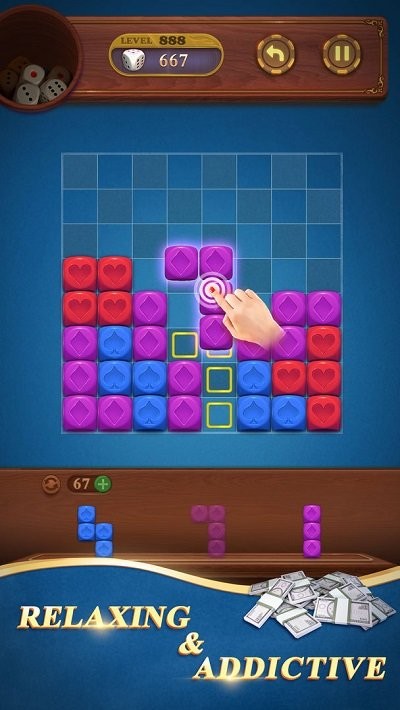 2、无压棋盘与策略深度:8x8自由棋盘取消时间限制,允许玩家深度思考每一步摆放策略,从简单消除到多层连锁,兼顾休闲体验与策略挑战。