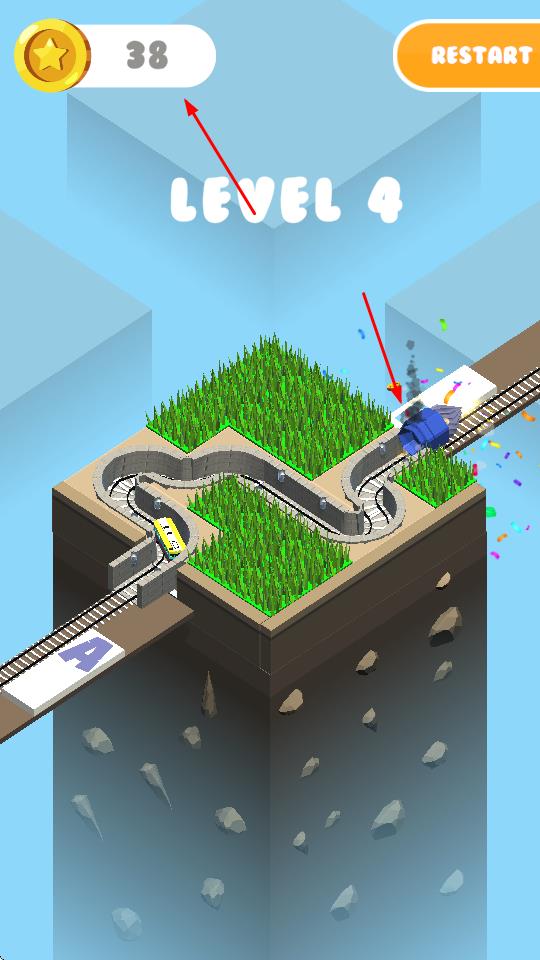 2、规划轨道时,引导车辆经过金币,尽可能多收集,积累金币资源,用于解锁内容或复活。