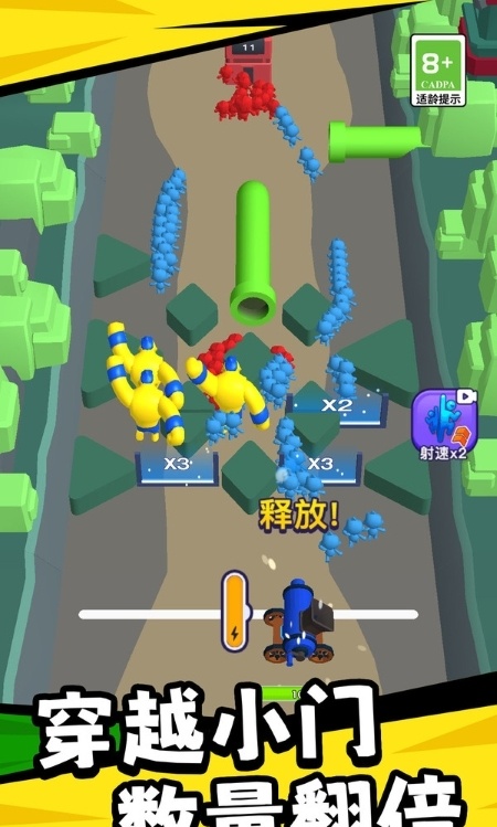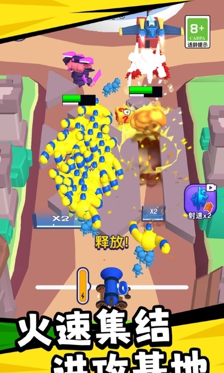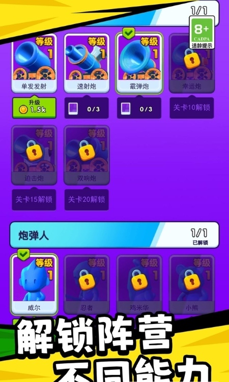 2、创新的炮弹人玩法独具特色,角色可以短暂变身为炮弹突破障碍,物理引擎模拟真实弹道轨迹,需要精准计算角度和力度。特殊变身特效与音效配合完美。
