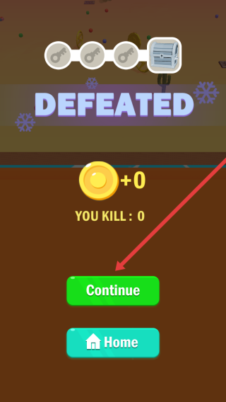 3、结算界面,点击【Continue】,继续下一轮竞技;若想返回主页,选【Home】,重新开始匹配。