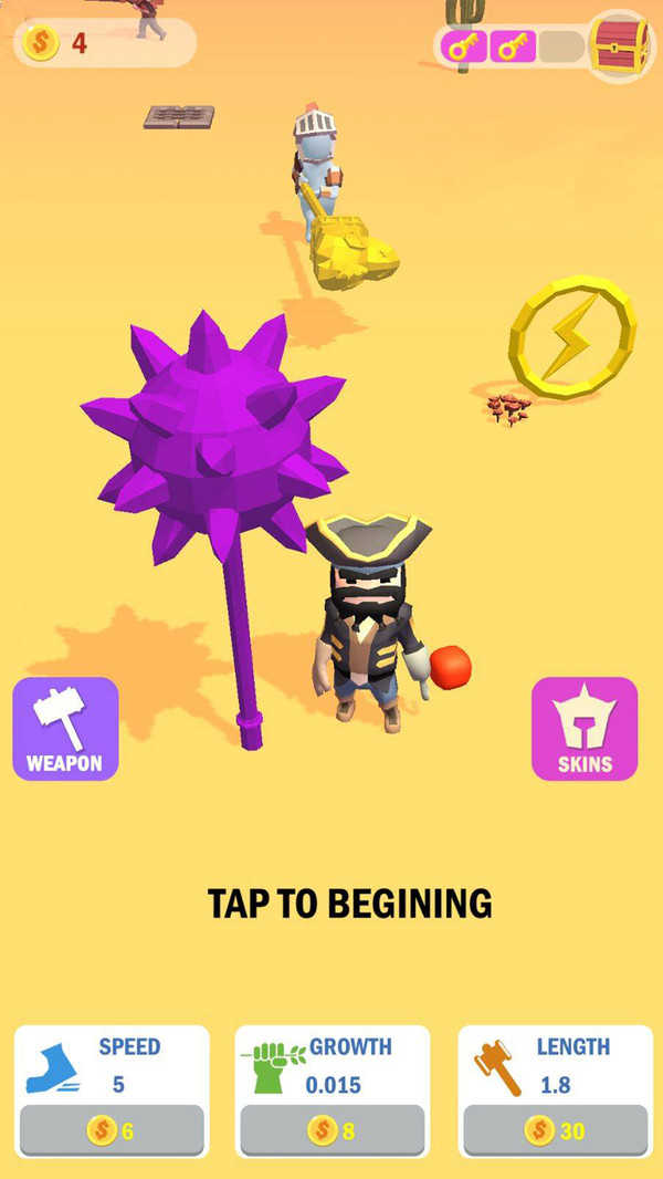 3、武器特性博弈:武器长度与战斗性能挂钩,长兵器攻击范围广但攻速慢,短兵器便于走位但爆发低,需根据对手武器类型实时调整战斗策略。