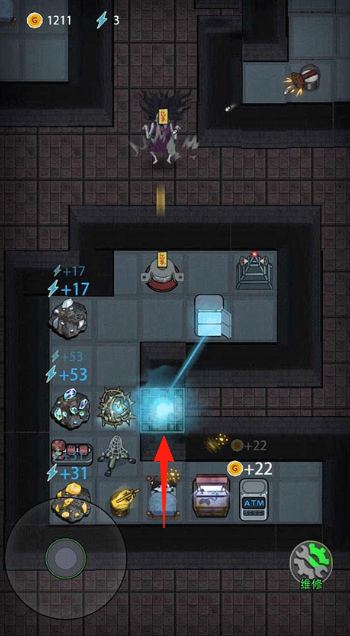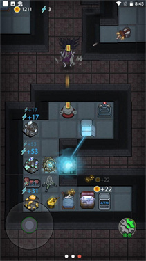 2、塔防建造在房间布置炮台、发电机等防御建筑,消耗金币、电力,升级塔防,抵御猛鬼。