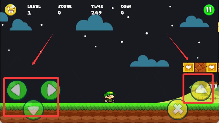3、开始游戏后点击左下角按键控制角色移动,右侧则是跳跃。