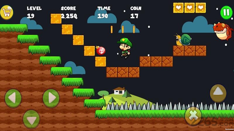 2、沿途收集金币、草莓与护盾等增益物品,通过奖励砖块与隐藏区域获取更多资源,助力关卡突破。