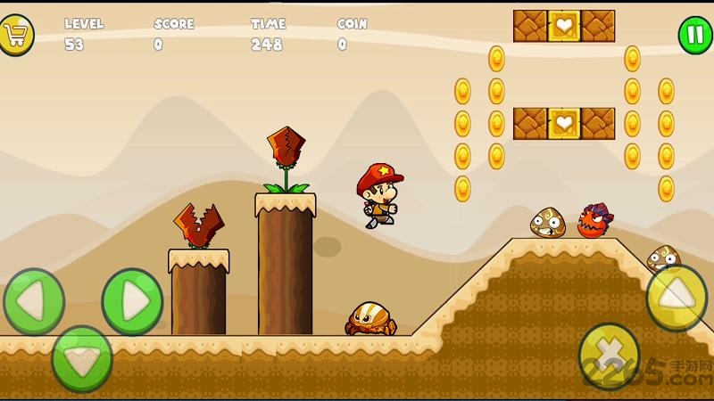 1、操作界面简洁明了,复古控制杆搭配跳跃、攻击按钮,操作流畅易上手,无需复杂教程即可顺利进入状态。