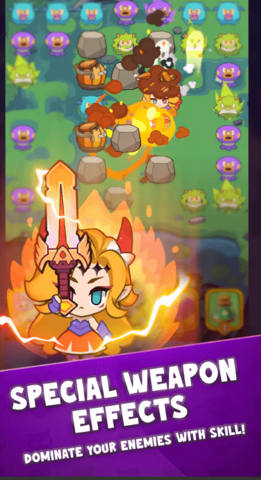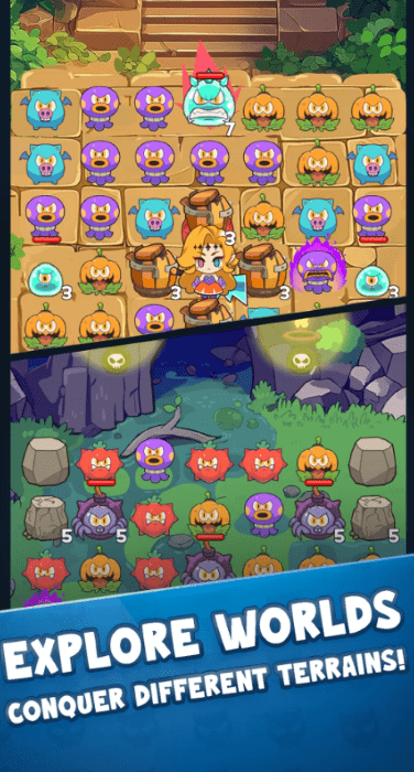 1、采用清新卡通画风,将三消元素与冒险剧情完美融合,让你在消除方块的同时享受角色成长与故事推进的乐趣。