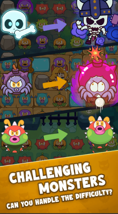 2、系统内置多种怪物形态,每个敌人都拥有独特攻击模式与弱点,需要通过精准连锁消除来充分利用角色技能将其击败。