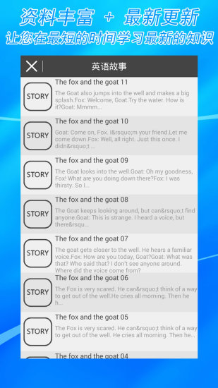 该应用搜集整理英语听力,分为初、中、高级三个大类,12个小类,海量素材。
