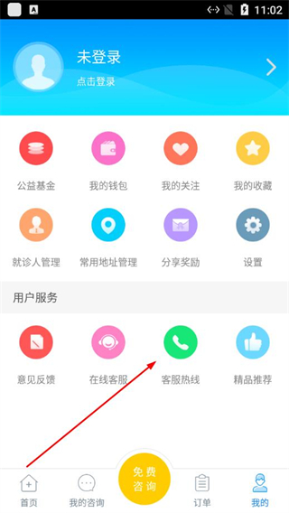 2、在个人中心页面的用户服务板块,找到并点击客服热线选项。