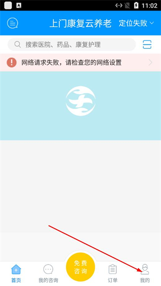 1、打开上门康复app的首页,点击底部导航栏的我的,进入个人中心界面。