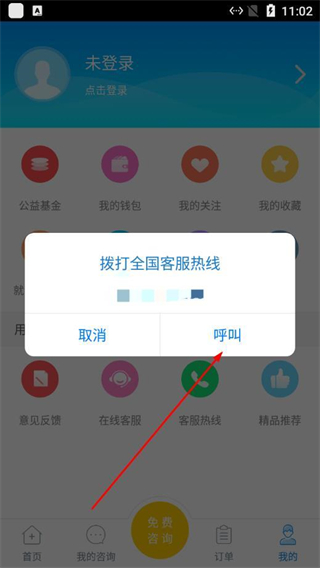 3、在弹出的拨打全国客服热线窗口中,点击呼叫即可拨打客服电话。