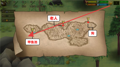 1、看地图找“甲鱼池”“老人”“狗”点位,优先标红路线走,按顺序探索,遇到NPC(老人、狗)先互动,接任务、拿物资,别瞎跑浪费体力。