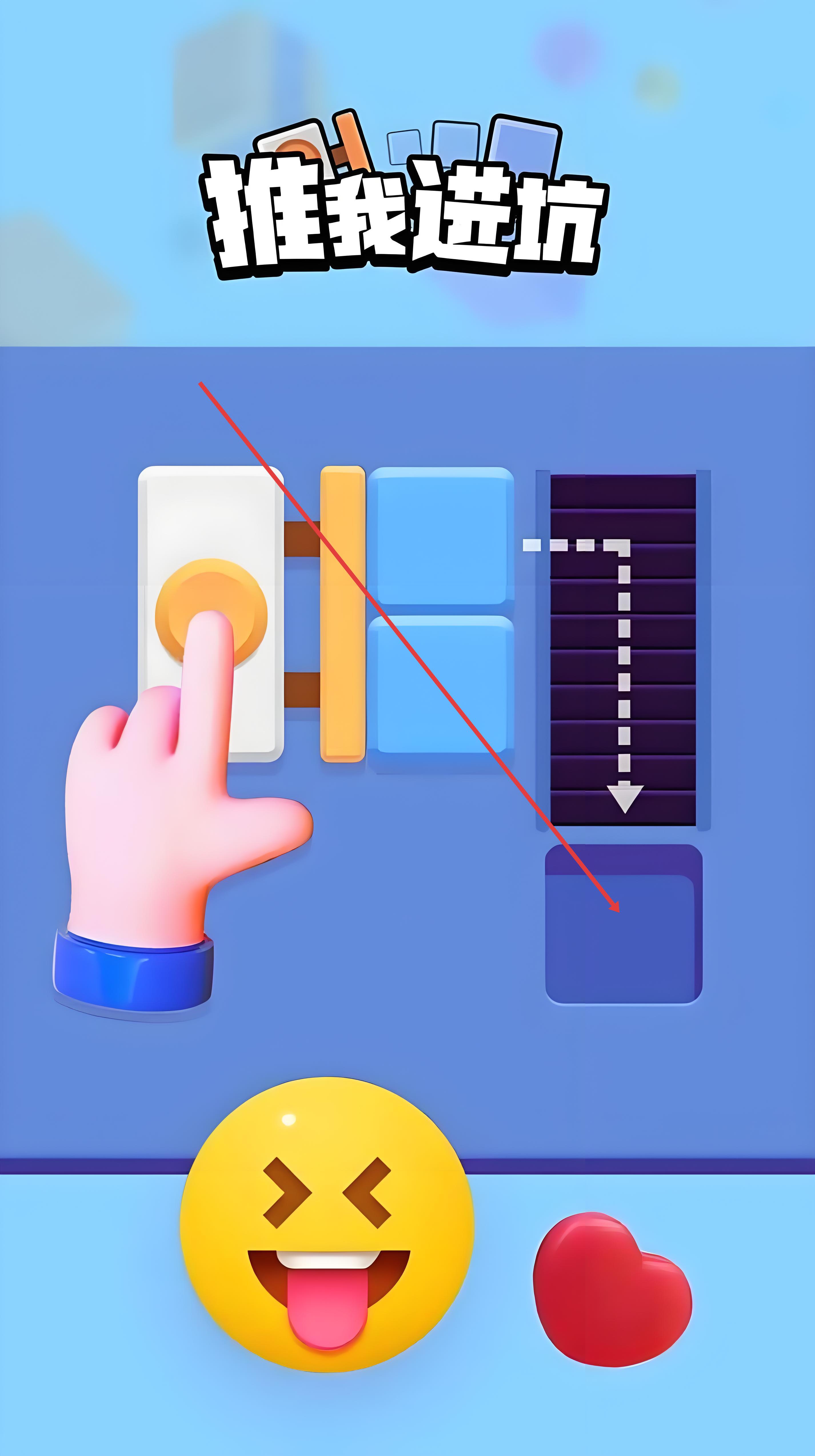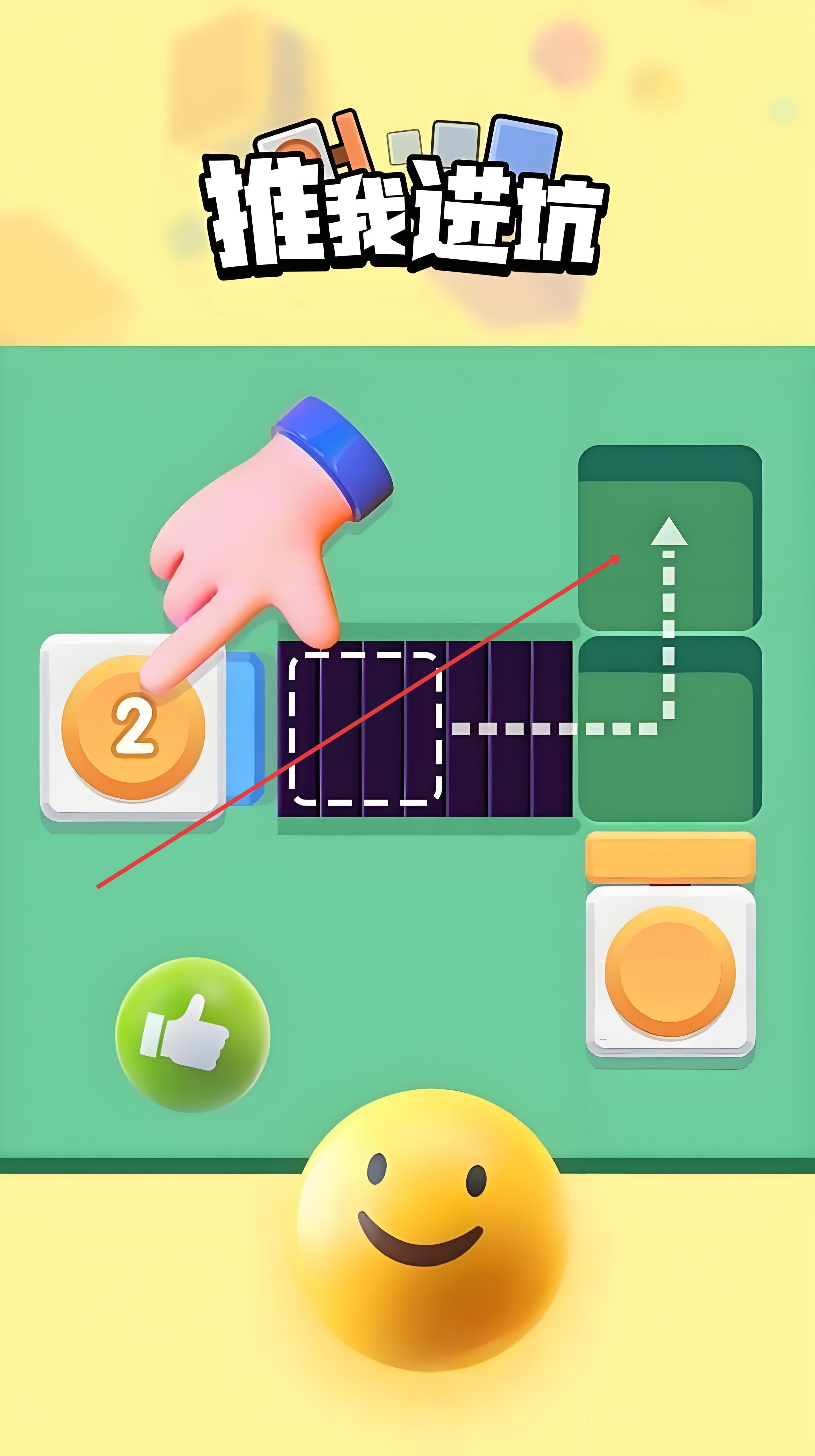 推我进坑是一款画风清新的极简逻辑解谜作品,玩家在方块迷宫中通过点击屏幕推动箱子,将所有方块精准送入指定坑位即可通关,以简约线条勾勒出清爽场景,搭配柔和光影与方块碰撞的物理反馈,在看似简单的推箱规则下,隐藏着数百个需要策略规划的烧脑关卡,从基础直线推动到多层嵌套的空间谜题,让玩家在放松解压的同时,体验逻辑闯关的成就感。