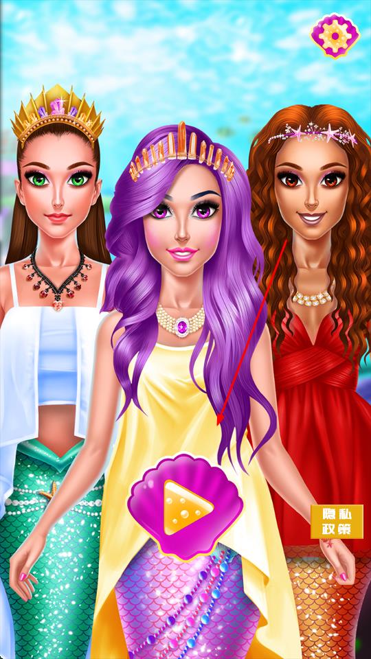 1、进入游戏后首先选择心仪的美人鱼公主形象,点击美妆台挑选眼影、腮红等色彩道具,滑动屏幕为公主涂抹渐变妆容,打造灵动眼妆与珊瑚色唇彩。