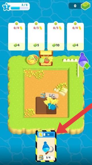 1、呈现农场经营玩法,玩家操控角色劳作,界面有任务进度、道具卡牌等,属于休闲模拟经营类小游戏。