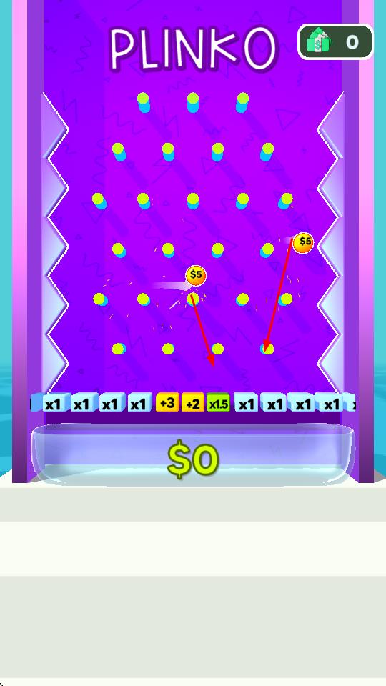3、到达“PLINKO”环节,投入资源,通过小球下落碰撞,获取对应倍数、金额奖励。