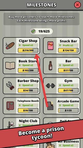 2、业务渐进拓展:从基础小贩到监狱大亨,通过完成任务赚取金币,解锁更多赚钱项目,如帮囚犯看风、与狱警合作进货等,实现收益进阶。
