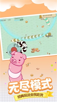 1、视觉清新国度:卡通风格的美食场景与蛇身设计,细腻的光影效果与流畅的动态表现,随场景变化的背景音乐,全方位打造极具视觉冲击力的美食世界。