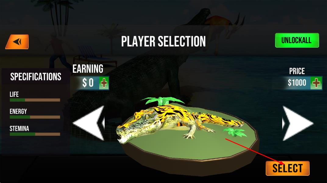 3、任务奖励系统:完成猎杀稀有猎物、破坏指定目标等任务,可获取能量点数,用于解锁鳄鱼的进化形态与特殊技能。