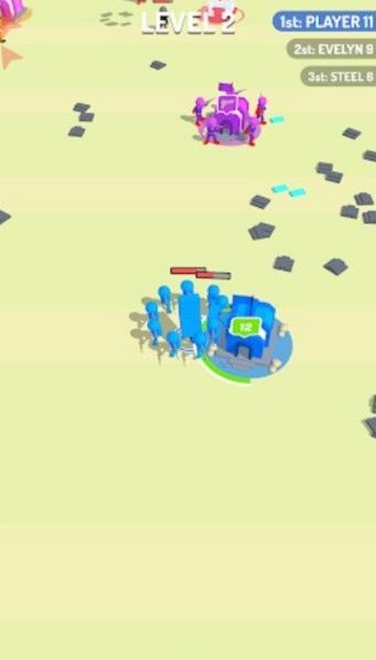 1、动态据点争夺机制:不同类型的据点拥有差异化的生产效率,大型黄金据点每分钟可产出5名橡皮人,而小型白银据点仅产出2名,玩家需根据战场布局优先抢占高价值战略要地。