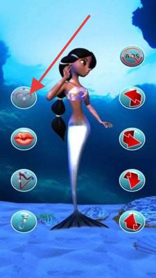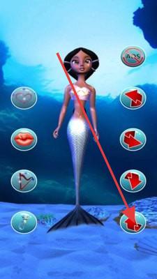 1、点击左侧圆形道具(如贝壳、唇彩),为美人鱼更换装饰、妆容。