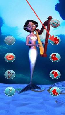 2、选择右侧红色箭头类道具,切换美人鱼手持物品(如竖琴)或动作。