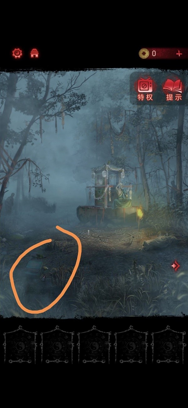 1、元宝与旗帜:山洞最里侧放「不倒翁」,拾取「福字旗」和「纸元宝」;坟场石桌按“玄武心尾位”摆面包+元宝,解锁林中丧仪堂。