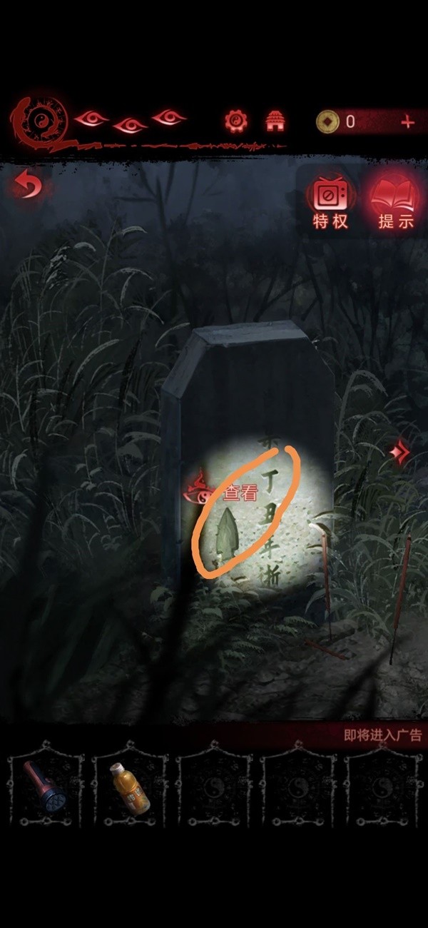 2、坟场石碑解密:用手电照亮左侧石碑,记录符号与天干(如丁丑年+矛头、丙子年+花朵);观察石桌机关,按“矛头→丁丑、花朵→丙子”摆放石块。