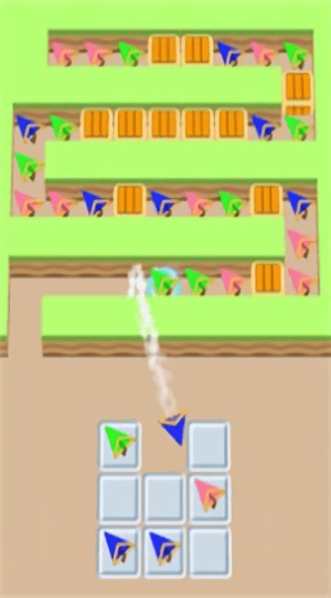 1、基础操作通过滑动屏幕控制纸飞机的发射角度和力度,需要精准预判落点来完成同色方块消除获取分数。