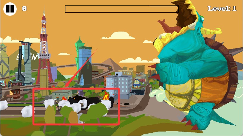 1、进入关卡后,怪兽将缓缓逼近城市,目标是尽快将指定数量的绵羊投送至其口中,阻止其破坏行动。