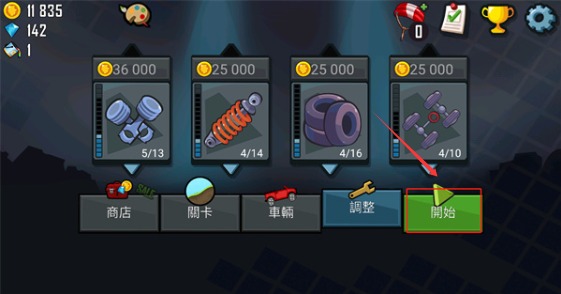 3、赛道中分布着金币与燃油补给,收集金币用于解锁新车辆与升级,燃油则是保持前行的关键,路线规划尤为重要。