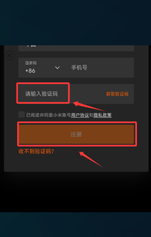 3、填写验证码后,勾选协议点击橙色注册按钮。