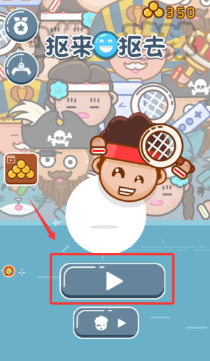 3、点击红框播放按钮开始游戏,控制猴子接住白球。