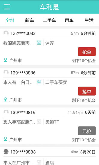 车利是商户版是一款汽车商户所使用的手机软件,汽车经销商和厂商可以在这里查看客户的最新订单并进行抢单,同时及时的回答客户所提出的问题,还可以看到客户的评价,能提高店里的知名度,增加收益,喜爱的朋友赶快下载体验吧!