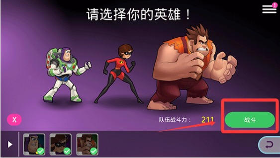 3、最后选择你的英雄,英雄都选择好了之后便可以点击战斗按钮开始战斗。