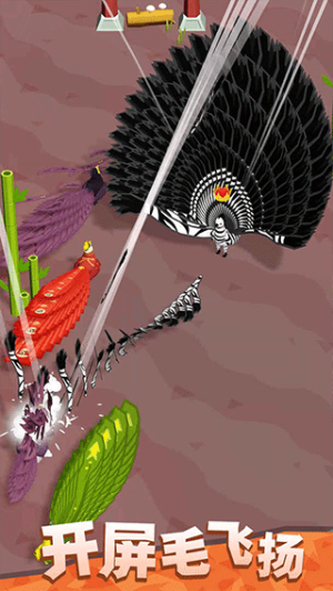 1、游戏开创性地将"拔毛"作为核心玩法,玩家需要操控孔雀在竞技场上收集散落的羽毛或从对手身上夺取羽毛,这种前所未有的游戏机制为休闲竞技类游戏带来了全新的乐趣体验。