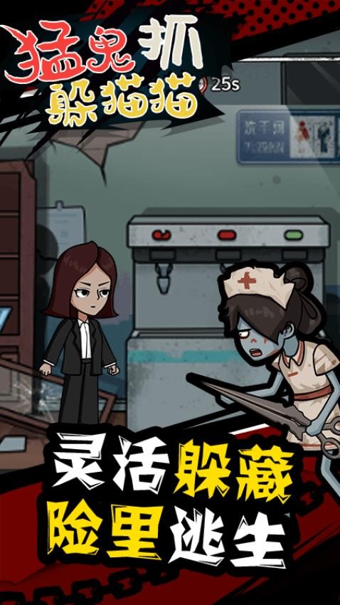 猛鬼抓躲猫猫手机版惊悚刺激的躲藏游戏,玩家需在复杂房屋中寻找隐蔽角落躲避猛鬼追捕,多人实时匹配,坚持到最后即可获胜,淘汰者无缝进入下一轮挑战。利用特殊道具和限时隐身能力,在规定时间内更换藏身处提升生存几率。