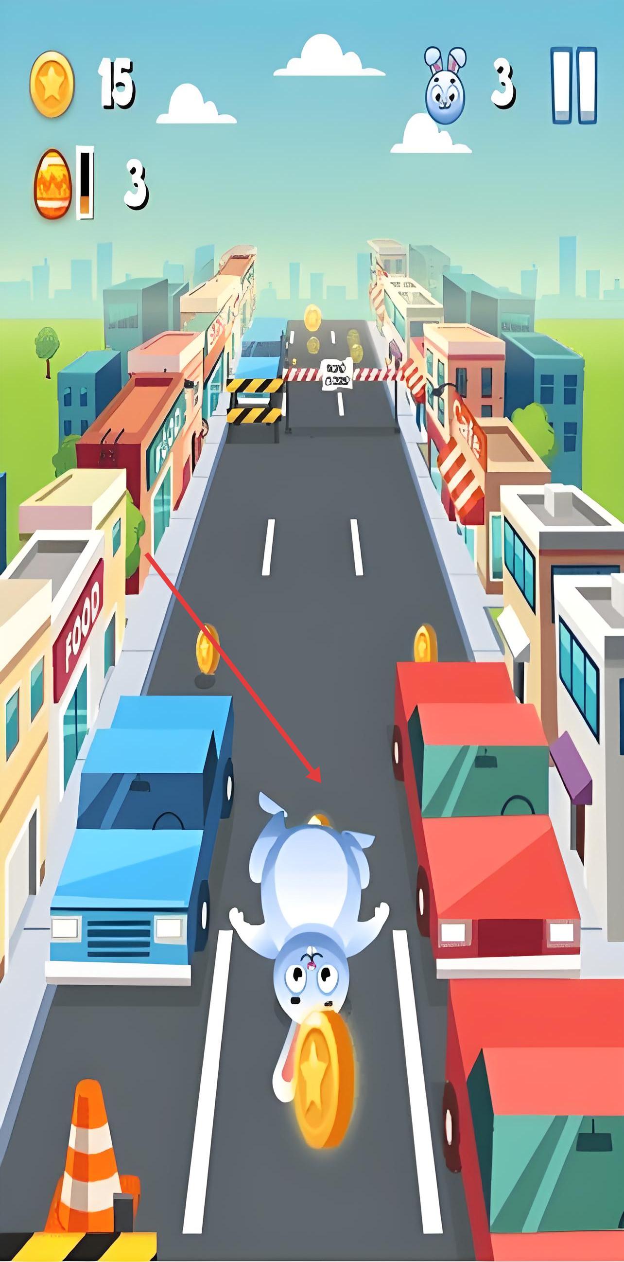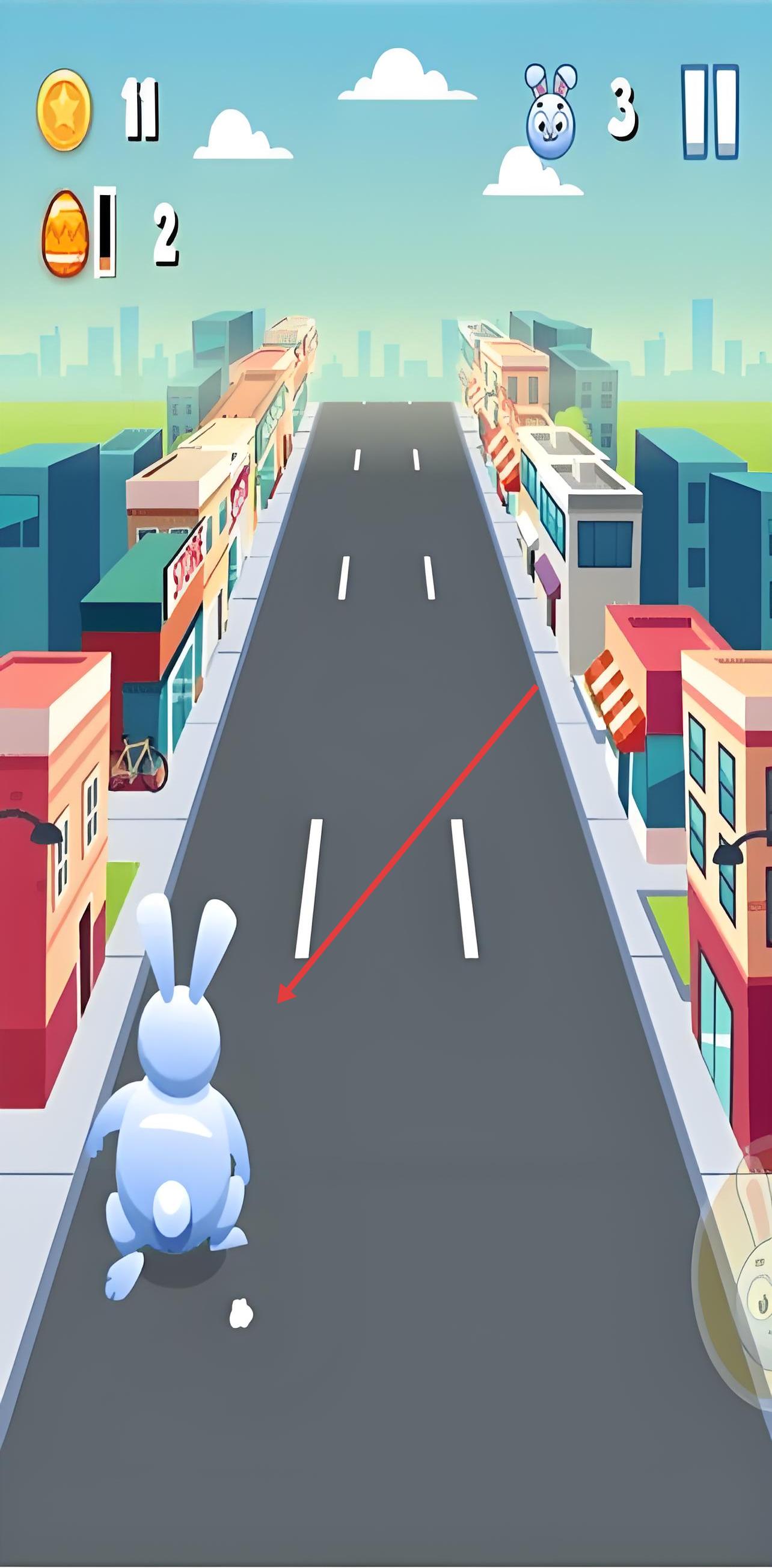 1、车流躲避技巧:观察车辆行驶规律,采用“预判式移动”提前调整兔子位置,面对密集车流时保持小幅滑动节奏,避免因大幅移动导致操作失误。