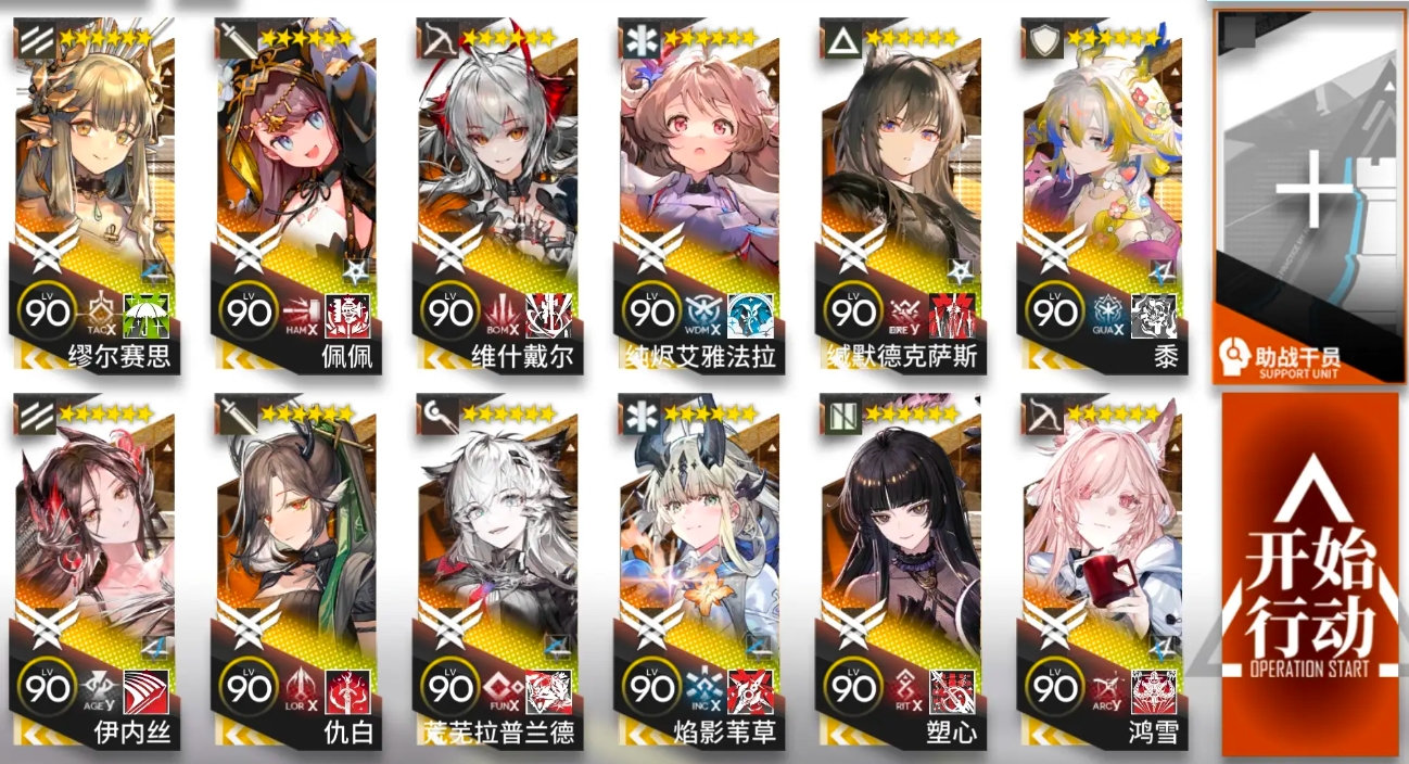 2、选择高练度助战干员(如满练六星),补足队伍短板,借助助战角色的强力技能提升阵容强度。
