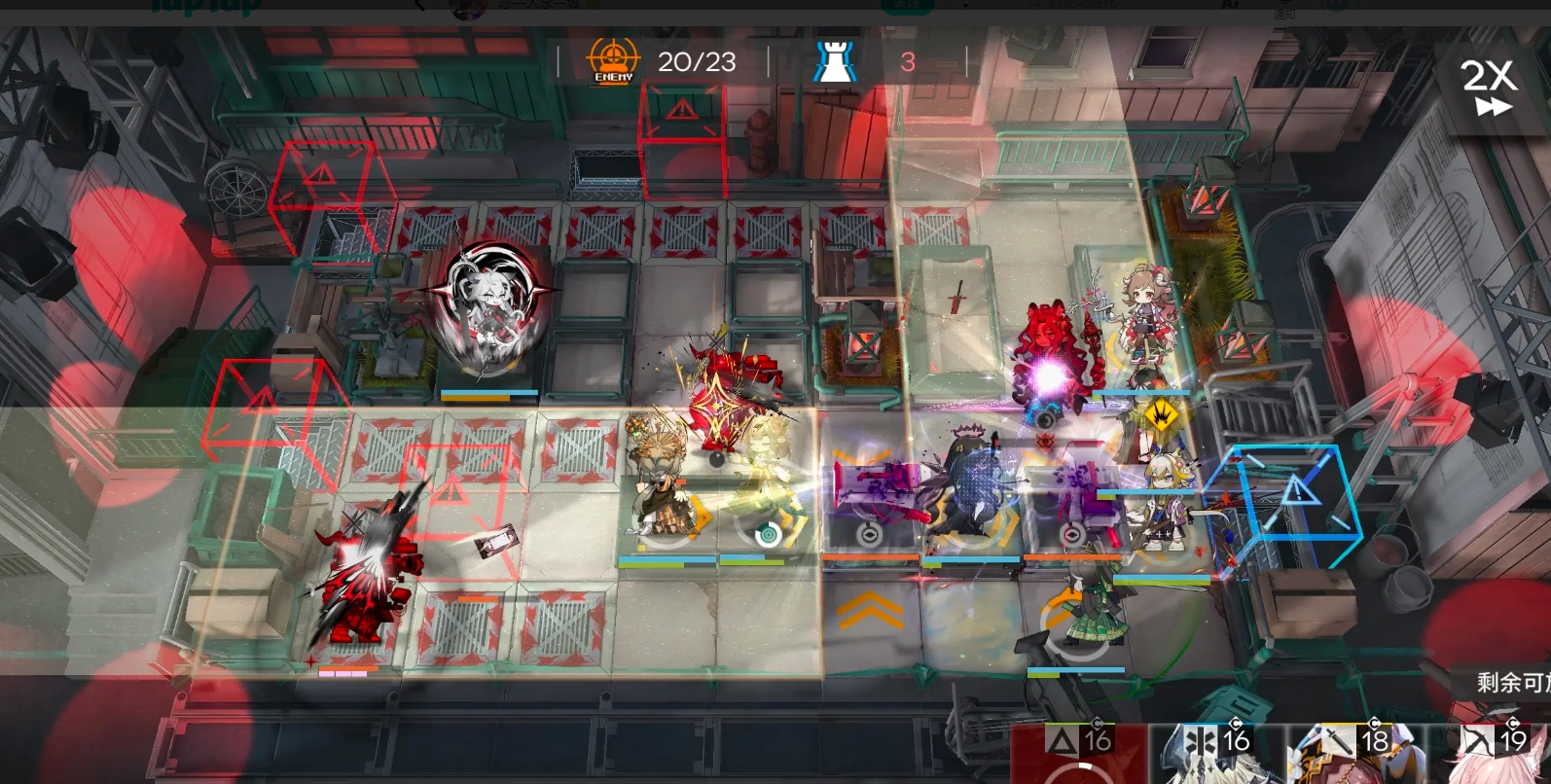 2、AD-EX-3机制应对:先锋朝左回费,山朝上抗伤,蜜莓朝左奶+驱散(处理减益),棘刺朝左输出,阿消朝下推突进怪,小羊朝下备“火山”清波;确保干员站亮区。