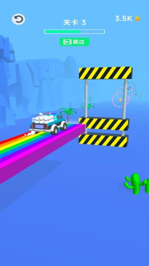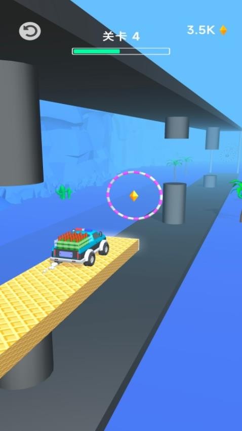 2、驾驶汽车,沿轨道前进,把握时机,穿过圆环,跳跃到下一段轨道。