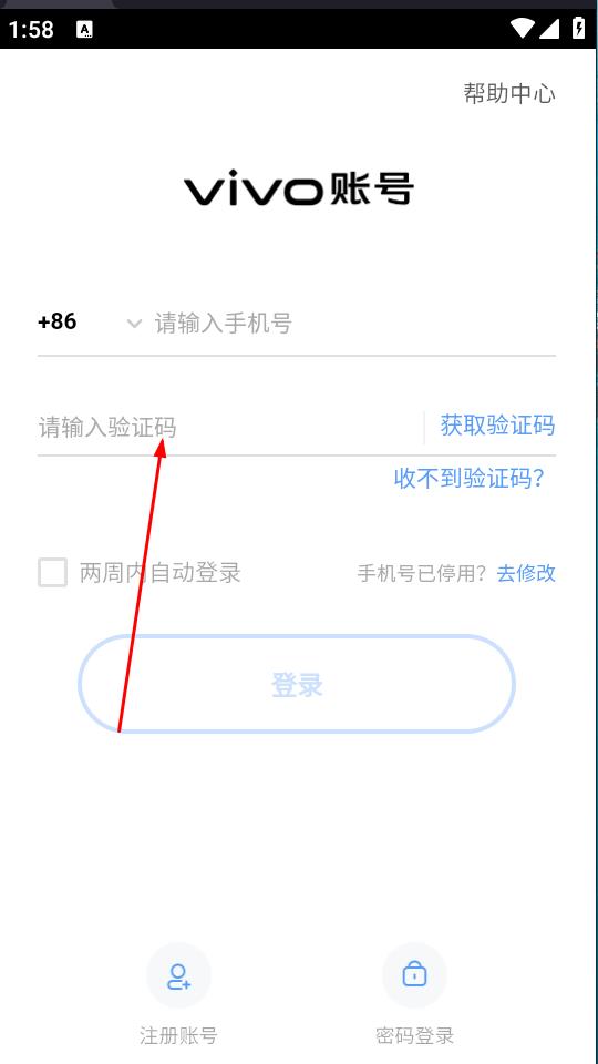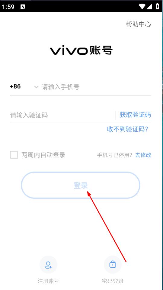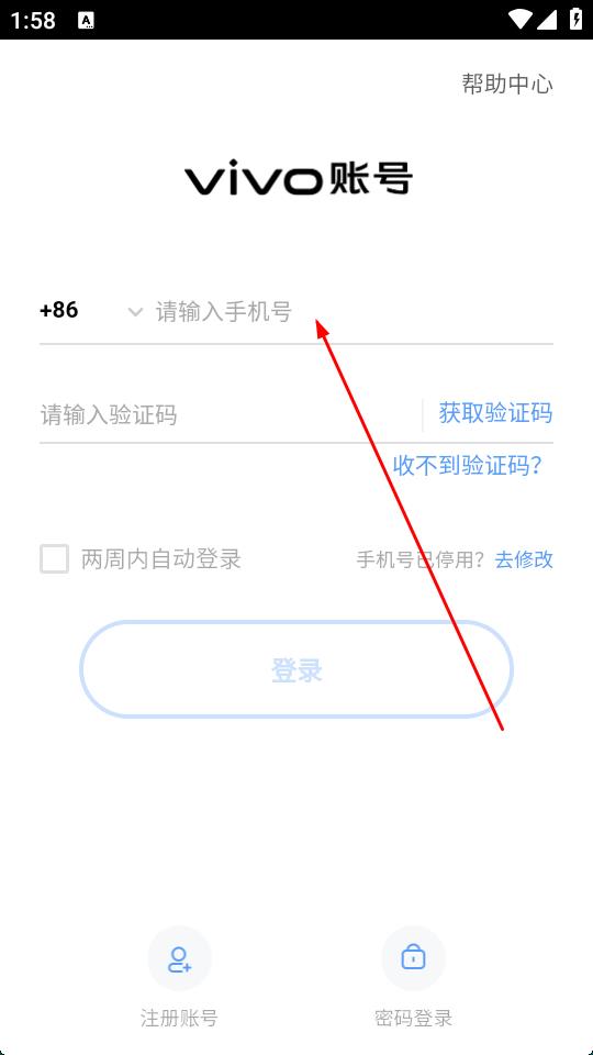 1、进入vivo账号后,第一次登入的点击注册账号输入正确的手机号核对确认。